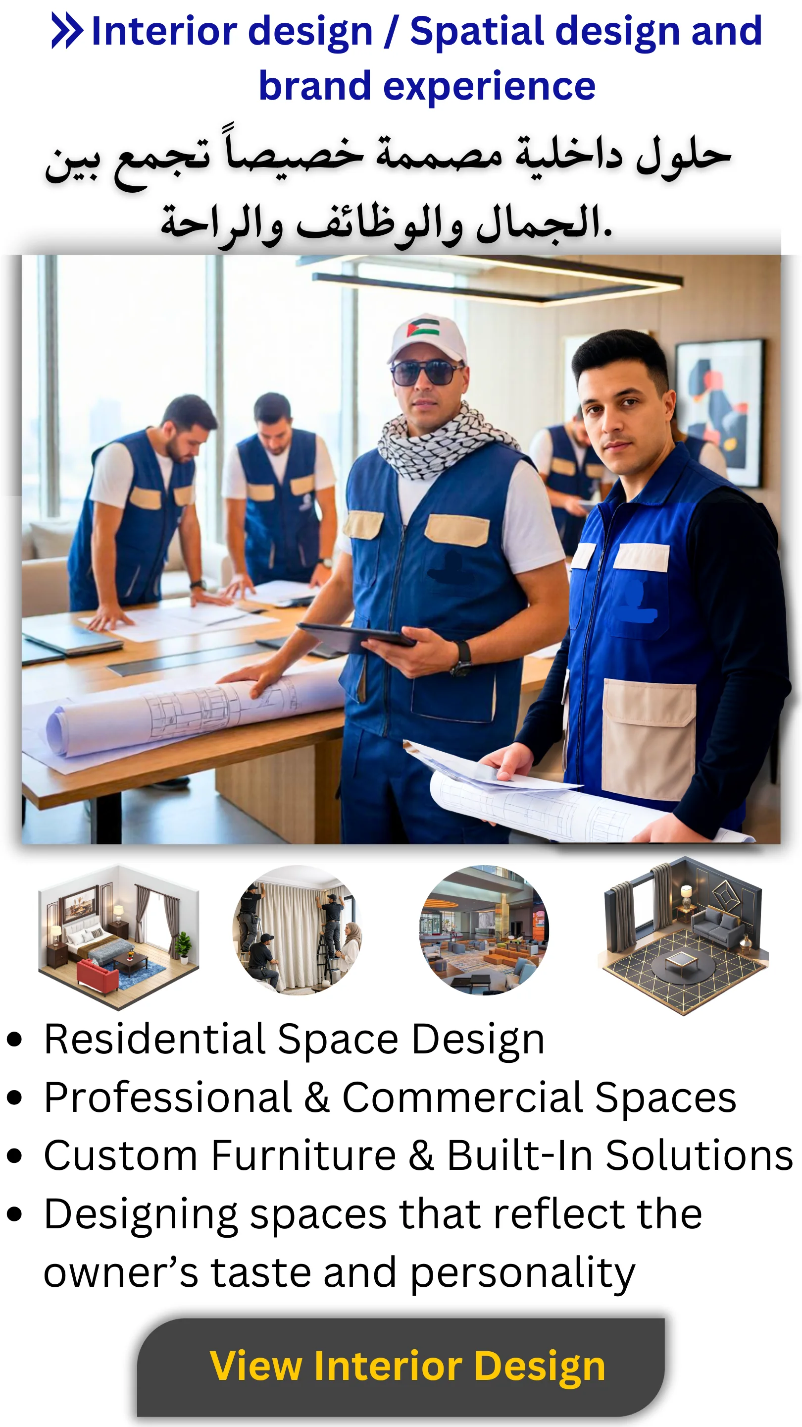 نــحن فريق متخصص في تصميم الديكور الداخلي وتنســيق المساحات، برؤية توازن بين الجمالية، الوظيفة، والتجربة النهائية.